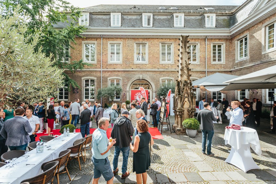 Um 11 Uhr startete der Einlass in eine der schönsten Locations in Köln. Im ehemaligen Kloster in der Kölner Altstadt-Süd hießen Benjamin Bruns und Rudolf von Borries rund 300 Gäste willkommen. In einem schönen Ambiente tauschten sich die Partnerinnen und Partner ausgiebig aus und wurden stets bestens versorgt. Mit Getränken von der Weinmanufaktur Christian Schardt, der Haaner Felsenquelle und der Privatbrauerei Gaffel blieb keiner der Gäste durstig. Auch das Grillbuffet, mit den Produkten der Hardy Remagen GmbH fand sehr guten Anklang. Für Gebäck und Kuchen sorgte die Bäckerei Schmitz Nittenwilm. Ein besonderer Dank gilt auch an unseren Fotografen Martin Scherag für die fantastischen Fotos, der das Event stets wie ein Schatten begleitete. Für dauerhaft gute Stimmung sorgte auch der DJ Ralph Rosenbaum, bei welchem wir uns ebenfalls bedanken möchten.
