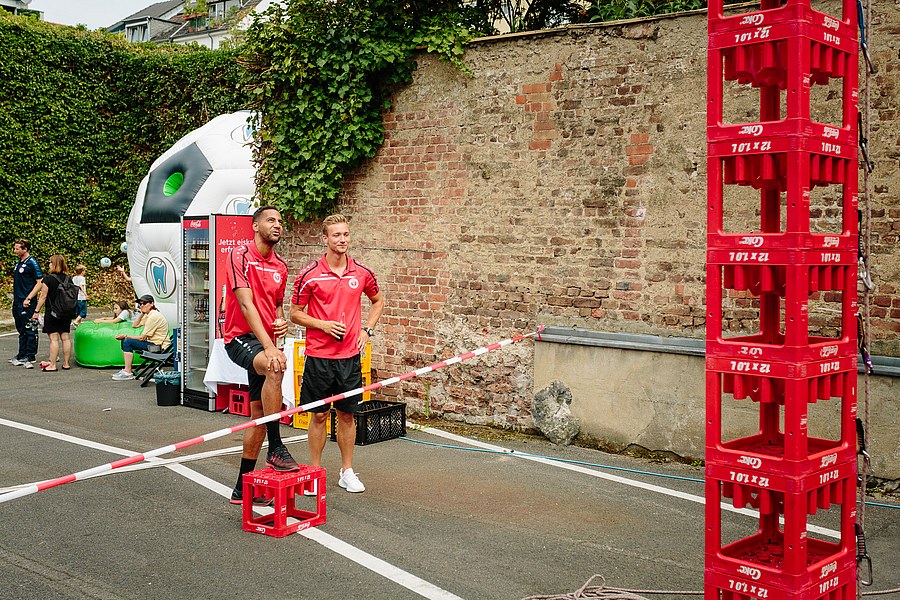Verschiedene Partner boten zudem ein abwechslungsreiches Programm für Groß und Klein, wie z.B. ein Torschussmessgerät von Pro Physio Rinke oder einen Kletterturm von der PFK Group und der Kletterfabrik Köln. Die Partner konnten die Mannschaft kennenlernen und sich weiter vernetzen, während die Kinder ein abwechslungsreiches Programm hatten. So wurde die Saisoneröffnung im Stadthotel am Römerturm zu einer rundherum gelungenen Fortuna-Familien Veranstaltung bei bestem Wetter und mit 400 Besuchern.