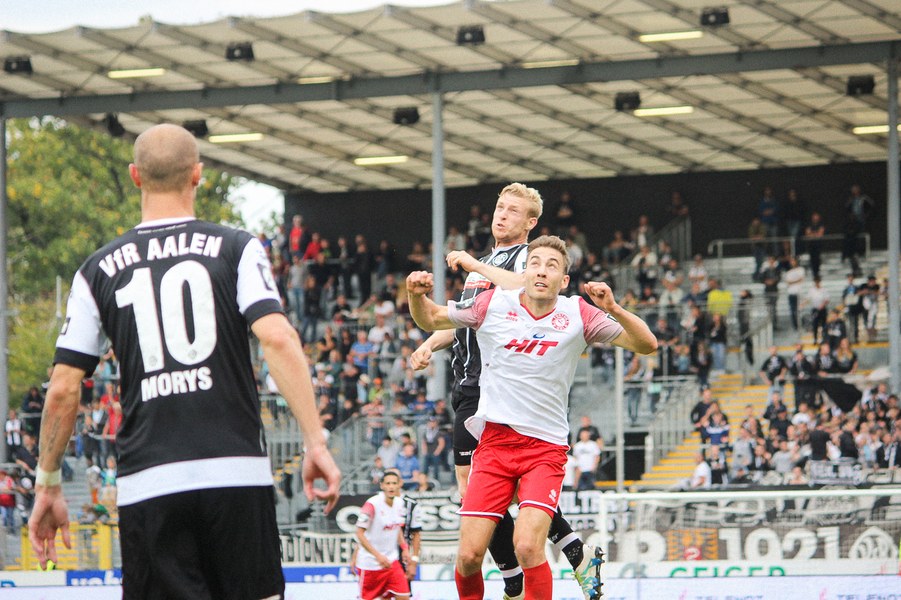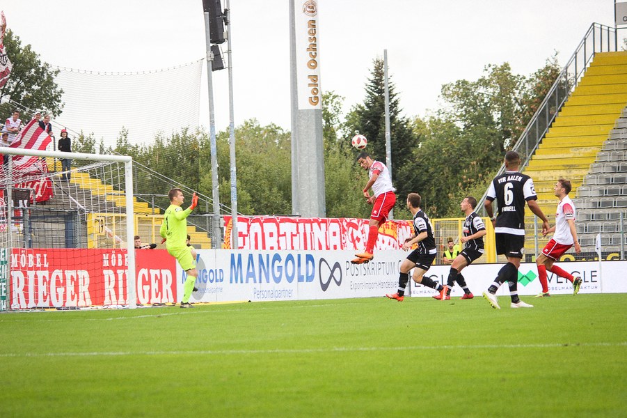 Die Fortuna ergriff nach einer zerfahrenen Anfangsphase die Initiative, konnte ihre Chancen aber nicht nutzen. So köpfte Koljic nach starker Flanke von Ernst aus elf Metern am Aalener Tor vorbei (7.). Nur eine Minute später scheiterte Dahmani ebenfalls mit einem Kopfball von der Strafraumkante (8.). Die Fortuna war spielerisch überlegen, ohne sich dabei mit einem Torerfolg zu belohnen. Einen direkten Freistoß von Kegel konnte VfR-Schlussmann Bernhardt nur mit großer Mühe parieren (19.). Danach gönnte sich das Spiel eine kleine Verschnaupause. Die Fortunen blieben spielbestimmend, ohne dabei aber offensiv zwingend gefährlich zu werden. Scheu verfehlte das Tor mit einem Distanzschuss knapp (34.). Aalen meldete sich mit einem Konter über Morys sowie anschließendem Freistoß von Bär zaghaft in der Partie an (37.). Es war aber nur ein Strohfeuer. Trotzdem ging es torlos in die Kabine, als nach feiner Flanke von Schiek Dahmani über den Querbalken köpfte (44.).
