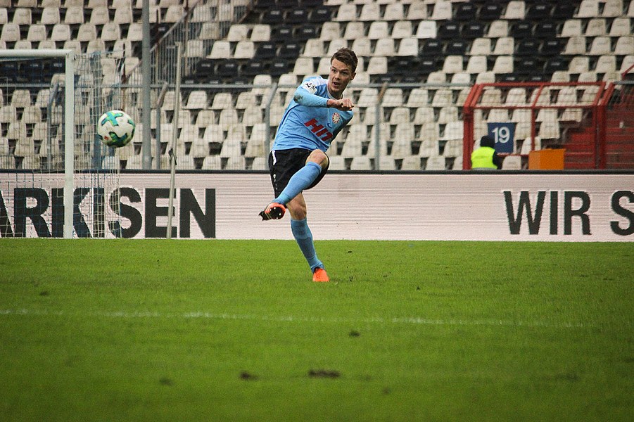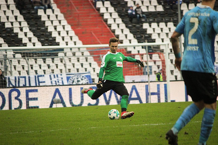 Trainer Uwe Koschinat änderte die erste Elf auf insgesamt drei Positionen. Kessel rückte für Farrona-Pulido in die Aufstellung, Theisen und Pazurek starteten für die beiden gesperrten Kegel und Kyere. Die Fortuna begann fehlerhaft in der Partie und so erwischte der KSC einen Auftakt nach Maß! Wanitzek eroberte tief in der Kölner Hälfte den Ball, legte auf Fink raus und dessen Hereingabe fand den Kopf von Schleusener. Der Stürmer verwandelte aus kurzer Distanz sicher (7.). In der Folgezeit leistete die Fortuna sich immer mal wieder Fehler im Aufbauspiel, die der KSC mit gefährlichen Kontern bestrafen wollte. Die Badener zeigten sich zwar spielstark, aber schafften es nicht wieder gefährlich vor das Tor der Kölner zu kommen. Nach und nach arbeiteten sich die Kölner aber ins Spiel und dominierten nach einer guten Viertelstunde teilweise das Geschehen. Abschlüsse von Bender und Dahmani waren die Folge (19./20.). Uphoff war es dann, der den Ausgleich der Fortuna verhinderte: Kessel und Dahmani spielten einen starken Doppelpass und hebelten damit die Defensive der Karlsruher aus. Kessels Abschluss konnte aber vom Schlussmann des KSC pariert werden (26.). Die Kölner probierten daraufhin öfters die Lücke zu finden, aber kamen vorerst nicht mehr gefährlich nach vorne. Kurz vor der Pause musste Boss dann allerdings eingreifen, als er nach einem langen Ball vor einem heraneilenden KSC-Stürmer in höchster Not klären konnte (44.).