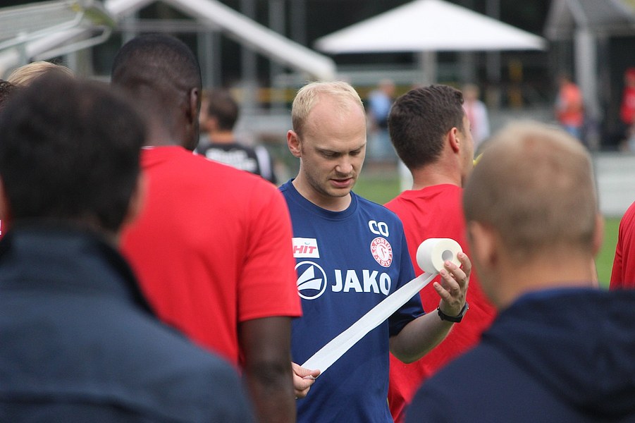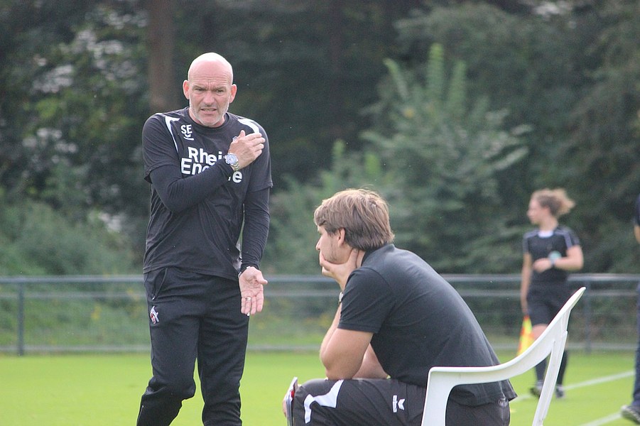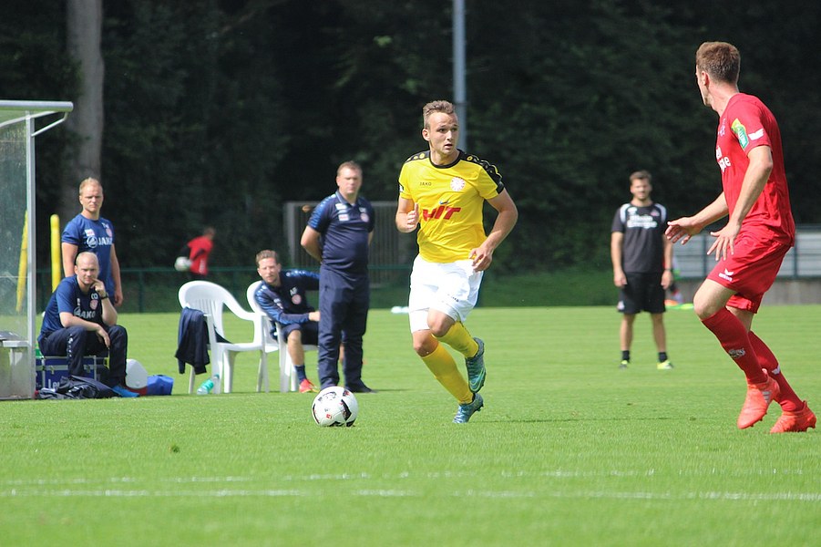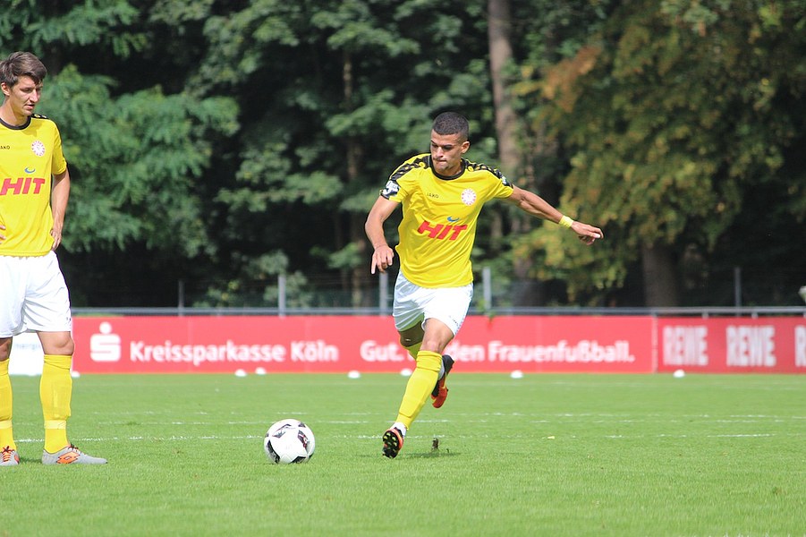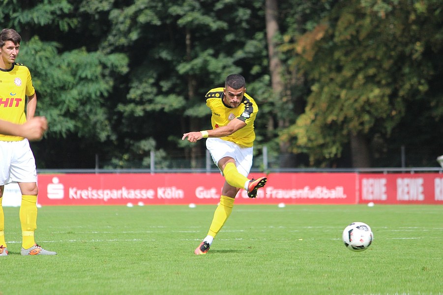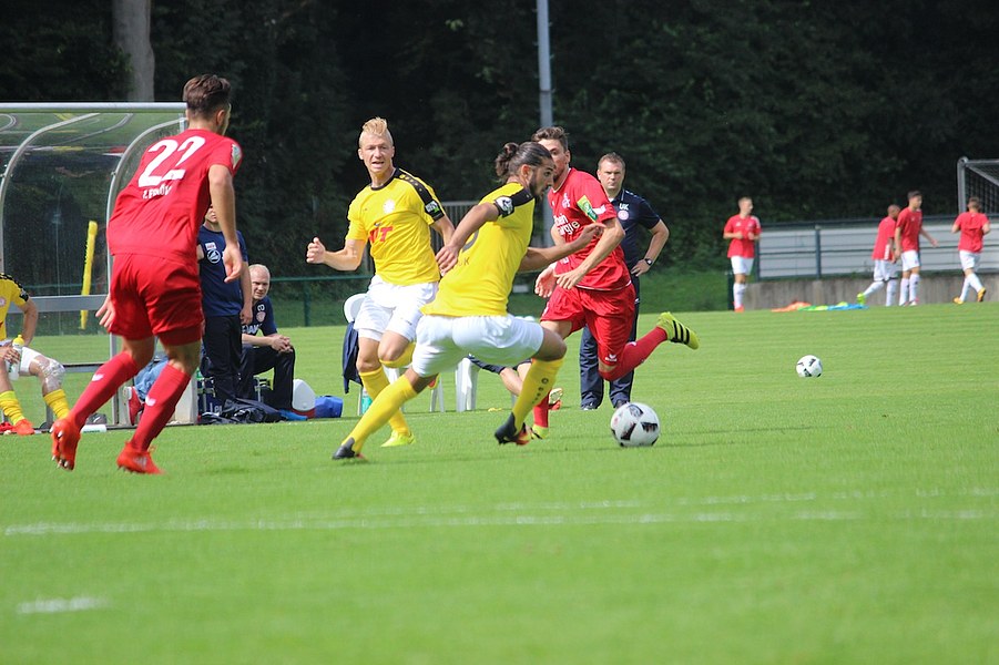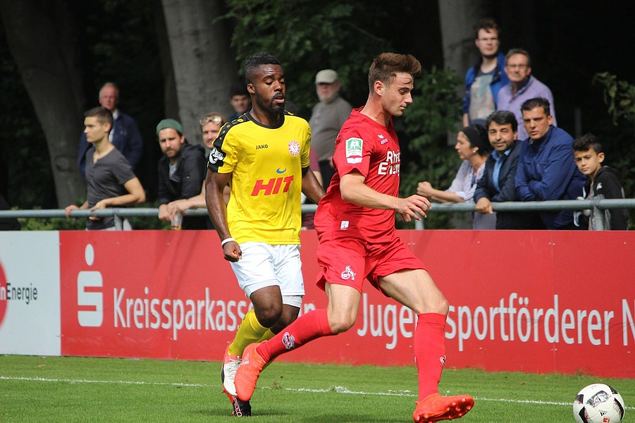 Von Beginn an ging die Fortuna mit der notwendigen Ernsthaftigkeit in den Test gegen die jungen Geißböcke. So setzte Röcker mit einem resoluten Zweikampf früh das erste Zeichen. Die Südstädter versuchten von hinten heraus das Spiel zu kontrollieren, lauerten zugleich aber auch auf Kontermöglichkeiten. Den ersten Torschuss gab jedoch der FC in Person von Bauer ab, nach einem Ballverlust der Fortuna (11.). Danach bestimmte der Drittligist jedoch die Partie. Immer wieder versuchte man schnell nach vorne zu spielen. Nach einem Konter des FC schaltete die Fortuna schnell um, sodass sich Rahn aus der Distanz probieren konnte (19.). Wenige Minuten zuvor wurde der Stürmer nach einem blitzsauberen Konter über Engelman in aussichtsreicher Position wegen Abseits zurückgepfiffen. Trotzdem ging die Fortuna anschließend in Front: Nach einem Ballgewinn von Engelman marschierte Andersen in Richtung FC-Tor. Schließlich war es Kessel, der nach Spielverlagerung von Bösing trocken ins kurze Eck verwandelte - 1:0 für die Fortuna (26.). Der Regionalligist kam gegen kompakte und giftige Südstädter nicht zur Entfaltung. Vielmehr hat Stoffels einen Distanzschuss für die Fortuna parat (39.). Dass die jungen Geißböcke aber nicht zur Entfaltung kamen, lag auch an der Aggressivität des Drittligisten. So war es nicht überraschend, das mit Stoffels ein Fortune kurz vor der Pause die einzige Verwarnung in der Partie sah (43.).