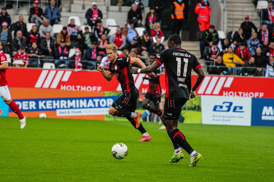Die zweite Halbzeit startete etwas ruhiger als die Erste und es kam zunächst keine Gefahr für eines der Tore auf. Ab der 50. Minute wurde das Spiel dann wieder schneller, wobei die Fortuna dem zweiten Treffer näher war als Essen dem ersten. Najar machte immer wieder Tempo, aber Rot-Weiss klärte jeden Versuch. In der 58. Spielminute foulte Rumpf dann auf der rechten Seite einen Essener. Kefkir bringt den Freistoß in den Strafraum, wo Heber zum 1:1 (59.) einköpfte. RWE wurde nach dem Ausgleich immer gefährlicher und die Fortuna klärte einige Großchancen in der letzten Sekunde. Von den Heimfans laut unterstützt, blieben die Essener gefährlich und drückten auf den Führungstreffer, gingen aber viel zu fahrlässig mit ihren Chancen um. Wenn die Fortuna sich befreien konnte, kamen sie kaum vor das Tor von RWE. In der 79. Spielminute bekamen die Südstädter zwei Ecken in Folge, wurden aber weiterhin nicht gefährlich. In der 87. Spielminute foulte Poggenberg im Strafraum den eingelaufenen Essener. Der Schiedsrichter zeigte sofort auf den Punkt zum Elfmeter. Dürholtz übernahm die Verantwortung und traf sicher in die untere linke Ecke zur 2:1 (89.Min) Führung für Essen. Der Kölner Keeper André Weis hatte keine Chance gegen den gut geschossenen Elfmeter. Die Südstädter fanden keine Antwort mehr und Rot-Weiss Essen behielt die drei Punkte an der Hafenstraße.
