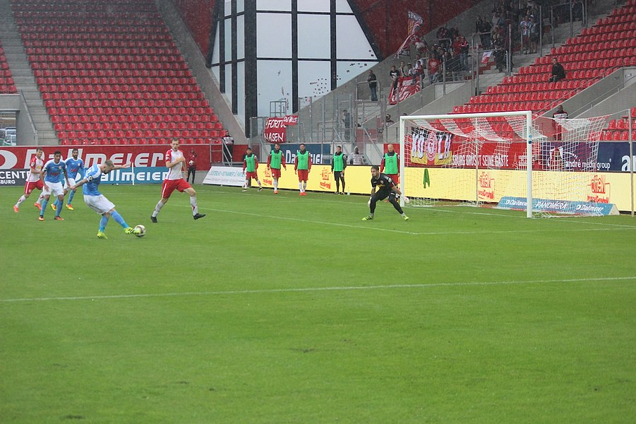 Ohne Wechsel gingen beide Teams in den zweiten Abschnitt, in dem der Jahn von Beginn an druckvoller agierte. So verpassten Kopp und Lais eine Pusch-Ecke (48.). Kurz drauf gelang Regensburg aber der Ausgleich: Nachdem Boss einen Schuss von Thommy noch aus dem langen Eck fischte, stand Lais goldrichtig und nickte zum 1:1 ein (52.). Die Partie wurde nun hektischer, weil das Regensburger Publikum plötzlich da war. Die Fortuna fand aber die perfekte Antwort: Alibaz dribbelte sich in den Strafraum durch und konnte nur per Foul am Abschluss gehindert werden. Den fälligen Elfmeter verwandelte Brasnic sicher (59.). Die erneute Fortuna-Führung sorgte aber nicht wirklich für Sicherheit. Das Spiel blieb weiter hektisch, weil der Jahn seine Möglichkeiten bekam: So tauchte George frei vor Boss auf, auch wenn der Fortuna-Keeper Endstation war (65.). Kurz darauf kam Grüttner aus spitzem Winkel nicht zum Abschluss (72.). Die Fortuna tauchte nur noch selten gefährlich im Angriff auf. Trotzdem hatte Brasnic die Vorentscheidung auf dem Fuß, als er frei vor Pentke scheiterte (78.). Zudem verpasste Souza aus aussichtsreicher Position das 3:1 für die Fortuna (88.). So kam es wie es kommen musste: SSV-Verteidiger Nandzik startete den letzten Angriff, Hyseni stieg am Höchsten und köpfte ins lange Eck zum 2:2 Endstand (90+4).