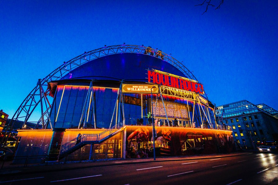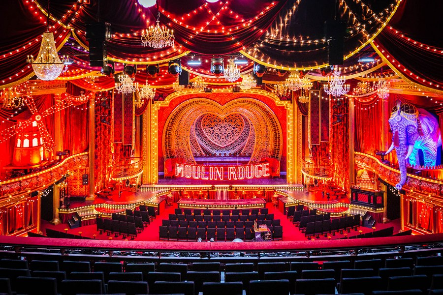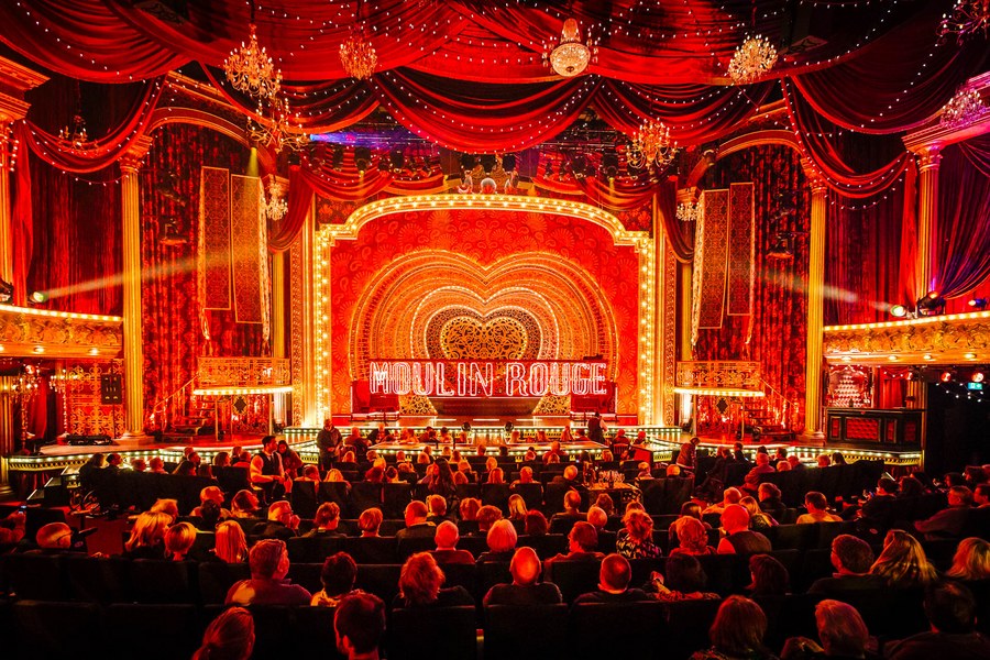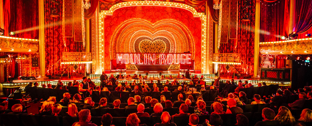 Erstrahlt in vollem Glanz: das Moulin Rouge. Foto: Martin Scherag (Pressefotos der Darsteller: Johan Persson)