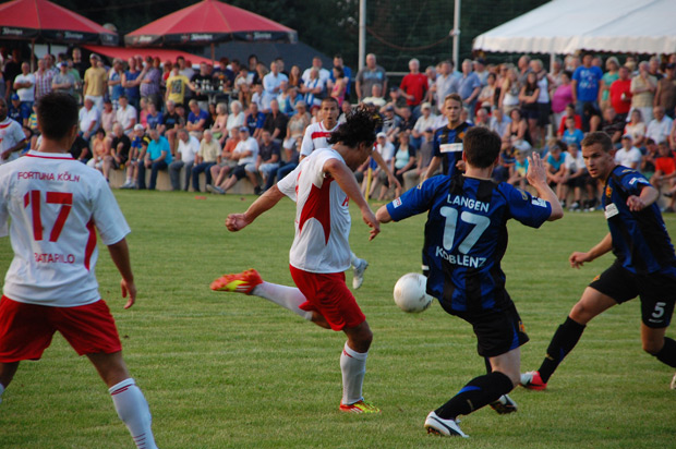 Die Fortuna hat das Testspiel am Mittwoch Abend gegen die TuS Koblenz mit 0:2 (0:1) verloren. Rund 400 Zuschauer auf dem Sportplatz in Büchel sahen ein hartes und intensiv geführtes Spiel der beiden Regionalligisten. Beide Koblenzer Tore resultierten aus Standardsituationen. Zunächst war es Mittelfeldspieler Klappert der nach einer Ecke frei zum Schuss kam (28.). Kurz vor Ende der Partie erzielte Philipp Langen den 2:0-Endstand per direkten Freistoß (87.). Die Fortuna hatte durchaus die Möglichkeiten das Spiel auch für sich zu entscheiden. Allerdings schaffte es die Mannschaft nicht die gebotenen Chancen zu nutzen. Montabell traf in der ersten Halbzeit nur die Latte. Im zweiten Durchgang scheiterten Zinke, Batarilo und Kraus nur denkbar knapp an einem Torerfolg. "Koblenz hat uns in der ersten Halbzeit mit extrem aggressiven Pressung den Schneit abgekauft. In der zweiten Halbzeit haben wir dann das Spiel diktiert," resümierte Cheftrainer Uwe Koschinat die Partie. Alle Stimmen zum Spiel findet ihr hier.