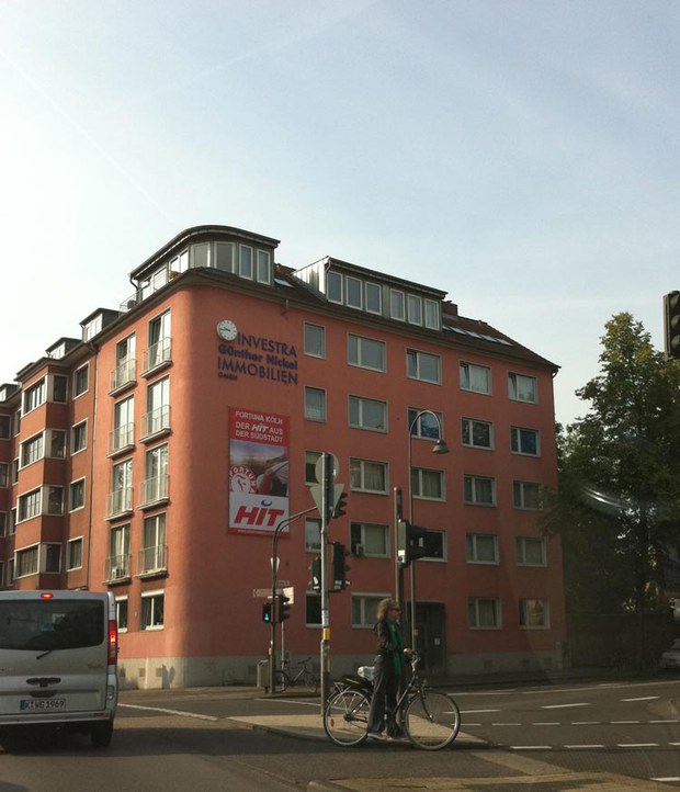 Nach wenigen Telefonaten und einigen Mails war eine tolle neue Idee geboren: Die beiden Fortuna-Partner, HIT Handelsgruppe und die Investra Immobilien GmbH, haben an der Ecke Innere Kanalstraße/ Dürener Straße ein großformatiges Werbeplakat anbringen lassen, dass alle Autofahrer an dieser vielbefahrenen Stelle auf die Fortuna und deren Spiele im Südstadion aufmerksam machen wird.