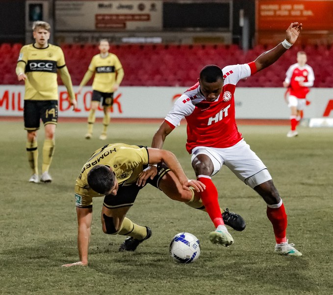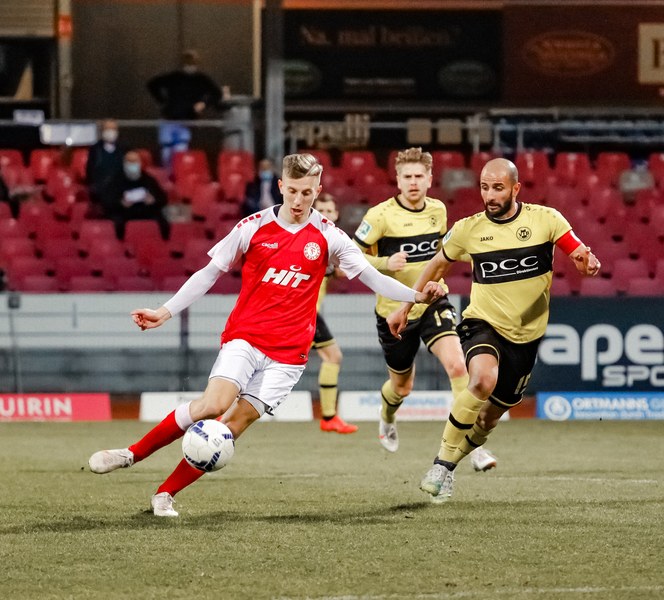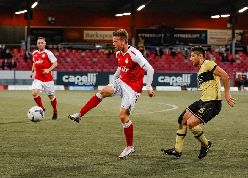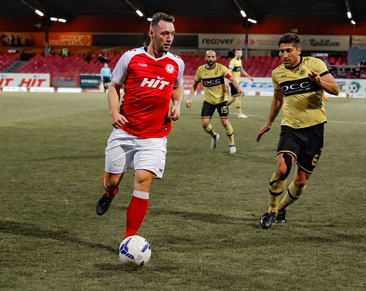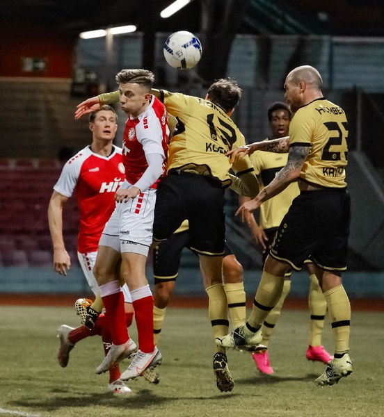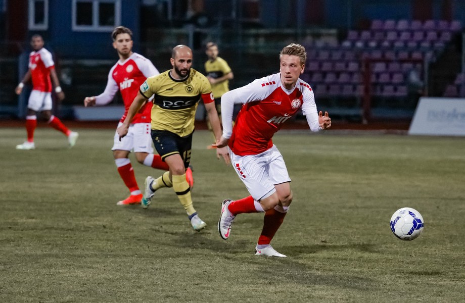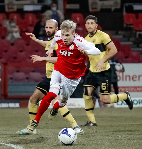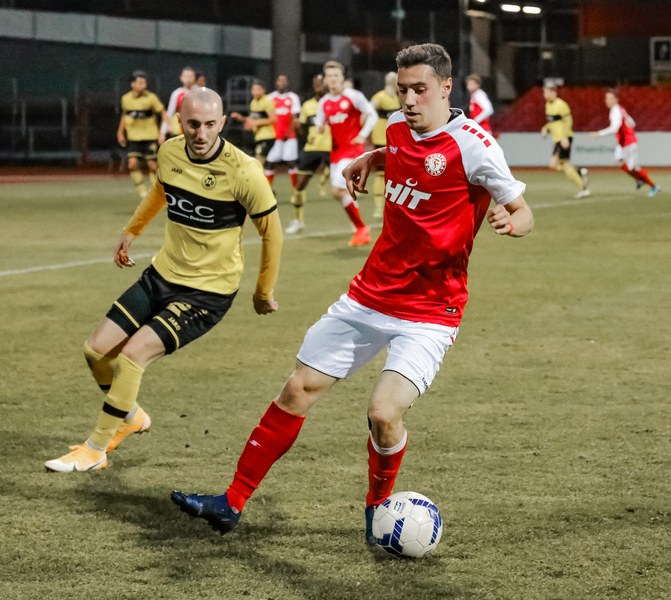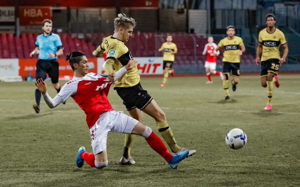 Im Gegensatz zum letzten Pflichtspiel nahm Trainer Alexander Ende vier Veränderung in der Startformation vor. Poggenberg, Itter, Kegel und Ubabuike rotierten in die erste Elf. Dafür nahmen Rumpf, Najar und Hölscher auf der Bank Platz, Prokoph stand nicht im Kader.Bereits nach drei Minuten näherten sich die Fortunen erstmals dem Homberger Tor. Dan-Patrick Poggenberg brachte von der linken Seite eine Flanke scharf vor das Tor, doch ein Homberger Verteidiger konnte per Kopf klären. Die Anfangsminuten gestalteten sich wie erwartet. Die Fortuna lag über weite Strecken in Ballbesitz und versuchte die gutstehenden Homberger Defensive zu durchdringen. In der 10. Minute kamen die Gäste vom Duisburger Rheindeich erstmals zum Abschluss. Nach einem Einwurf brachte Said Harouz den Ball erst in den Sechzehner, in dem es zu Tumulten kam, ehe ein weiterer Homberger den Ball am linken Pfosten verzog. In der 15. Minute nahm es Innenverteidiger Lanius etwas zu genau und traf nach Ecke von Kegel nur den Querbalken. Nach und nach kamen die Duisburger besser ins Spiel und kamen gleich zu mehreren Chancen. Nach einer Freistoßflanke in der 18. Minute flog der Ball erneut links am Tor vorbei. Nur eine Minute später wurde Ahmad Jafari mit einem langen Ball auf die Reise geschickt, doch Jannik Löhden war hellwach und klärte zur Ecke. In der Folge kam es zu weniger Strafraumszenen, da sich der Ball vermehrt im Aufbauspiel der Fortuna befand, jedoch nicht das letzte Drittel eindringen konnte. Nach 28 gespielten Minuten war es erneut Dominik Lanius nach einer Ecke von Maik Kegel, der den Ball auf das Tor, genauer gesagt auf das Tornetz brachte. Nun kam die Fortuna dem Führungstreffer näher. Über die linke Seite flankte Poggenberg den Ball in Richtung Sechzehner und fand in Ochojski einen Abnehmer. Dieser köpfte den Ball an das Lattenkreuz, Schiedsrichter Engelmann hatte jedoch ohnehin schon auf Abseits entschieden (30. Minute). Nach einem taktischen Foul an der Außenlinie, auf Höhe der Mittellinie sieht Nico Brandenburger zurecht die gelbe Karte. Bei seinem Einsatz zog sich der Mittelfeldmann allerdings ebenfalls eine blutige Nase, nach einem Ellbogenstoß seines Gegenspielers Said Harouz zu, welcher daraufhin ebenfalls die gelbe Karte sah (33. Minute). Der Freistoß im Anschluss an die Situation sorgte nochmals für Gefahr vor dem Tor von Kevin Rauhut, denn der 2,02 große Innenverteidiger Cottrell Ezekwem kam unbedrängt zum Kopfball doch verpasste den Kölner Kasten recht deutlich. Kurz darauf wäre es fast der Führungstreffer gewesen. Owusu drang über die rechte Seite durch und brachte den Ball flach und gefährlich in den 16er, doch Francis Ubabuike rutschte knapp am Ball vorbei und so gab es Torabstoß für die Homberger. Nur wenige Minuten vor der Pause sorgte Maik Kegel mit einer verunglückten Flanke für Gefahr vor dem Tor des Homberger Keepers Gutkowski. Dieser passte allerdings gut auf und parierte zu einer weiteren Ecke für die Hausherren (41. Min). Da auch in den restlichen Minuten bis zum Halbzeitpfiff nichts wesentliches mehr passierte, ging es verdient mit einem torlosen Remis in die Pause. Der angeschlagene Nico Brandenburger blieb in der Halbzeit in der Kabine und wurde durch Timo Hölscher ersetzt. In der 52. Minute wurde Hamza Salmans Dribbling auf Höhe der Sechzehnerkante mit einem Foul gestoppt. Maik Kegel trat zum fälligen Freistoß an, traf jedoch nur die Homberger Mauer. Über den eingewechselten Hölscher gelangte der Ball nach einem starknen Dribbling auf die linke Seite, wo sich Poggenberg stark im Laufduell durchsetzte, dessen Flanke kam aber nicht wirklich an, aber Fortuna startete damit auch in die zweite Hälfte mit einer guten Aktion (56. Minute). Die Gäste aus Homberk kamen im Gegnzug zu einer risen Chance: Harouz stand nach einem Steilpass plötzlich alleine vor Rauhut und schießt dann ohne Druck meterweit am Tor vorbei. Die Fortuna hatte zu diesem Zeitpunkt großes Glück, dass der Rheindeicher eine solche zwingende Möglichkeit liegen lies. Dann wechselte Cheftrainer Alexander Ende doppelt. Er nahm Ubabuike und Itter vom Platz und schickte dafür Najar und Isobe auf das Spielfeld (62. Minute). Owusu wurde dann von Hölscher per Chip sehr schön im gegnerischen 16er in Szene gesetzt, sein Schuss aus der Drehung heraus wurde von den Hombergern abgeblockt unnd brachte die nächste Ecke ein. In seinem ersten Spiel für die Fortuna fiel Isobe sofort durch seine Aktionen auf. In der 69. Minute drehte er sich um seine eigene Achse an gleich zwei Gegenspielern vorbei, sein Abschluss wurde aber geblockt. Löhdens Nachschuss landete dann in Torwart Gutkowskis Armen. Anschließend kam Rumpf für Kegel in die Partie (74. Minute). Die Fortuna hatte jetzt deutlich mehr Ballbesitz und erspielte sich in der 75. Minute eine weitere riesige Chance . Nach einem Einwurf setzte sich Najar erst an der Außenlinie durch, drang dann bis zur Torauslinie hervor und lässt mehrer Gegenspieler stehen. Dann legte er den Ball quer auf Isobe, der alles richtig macht und den Ball zunächst am Torwart vorbeilegt und den Ball dann aus einem Meter an den Pfosten setzte. Das zweite Mal Aluminium Glück für die Gäste aus Homberg. Auch die Duisburger kamen noch einmal zu einem aussichtsreichen Vorstoß, dieser wurde unfair von dem zuvor eingewechselten Rumpf gestoppt, was einen Freistoß nach sich zog. Die Gäste vom Duisburger Rheindeich nutzen in der Schlussphase jede Möglichkeiten, um Zeit von der Uhr zu nehmen und ließen sich bei all ihren Aktionen reichlich Zeit. Hölscher sah dann noch aufgrund eines taktischen Fouls zurecht die gelbe Karte (83. Minute) .Die Homberger standen sehr defensiv und ließen der Fortuna kaum Lücken. Löhden wurde vom Innenverteidiger zum Stürmer befördert, um vor dem gegnerischen Tor hoch angespielt zu werden, doch es kamen kaum verwertbare Flanken auf den großen Spieler. Am Ende trennten sich der VfB Homberg und Fortuna Köln 0:0 unentschieden und teil
