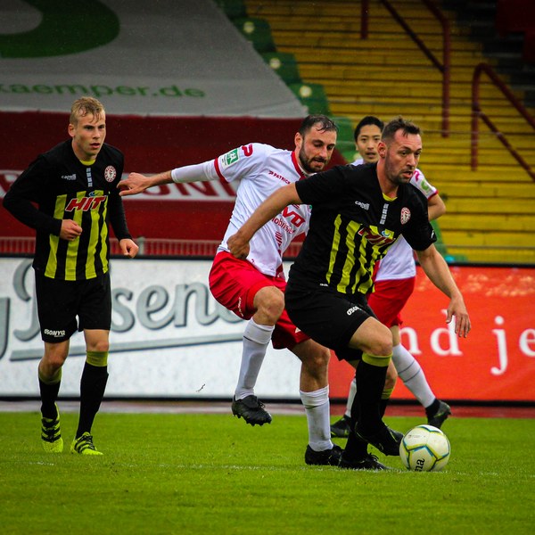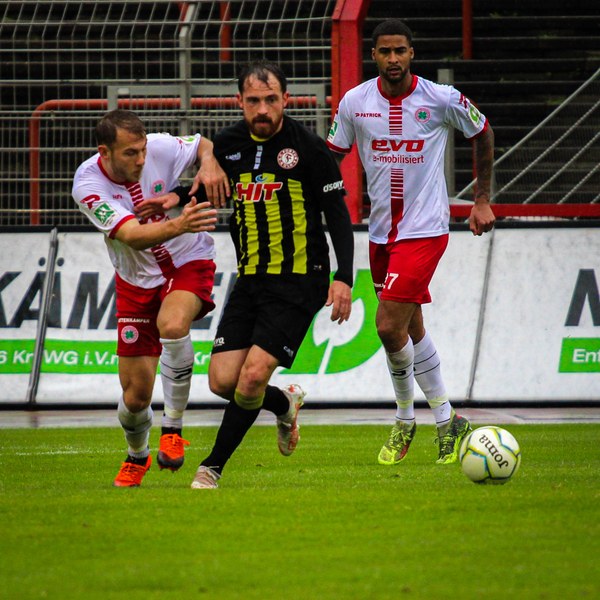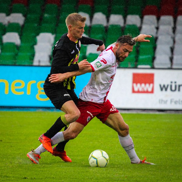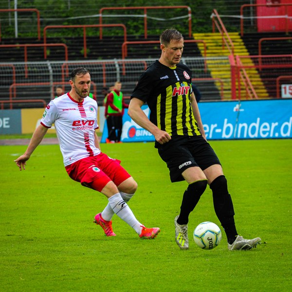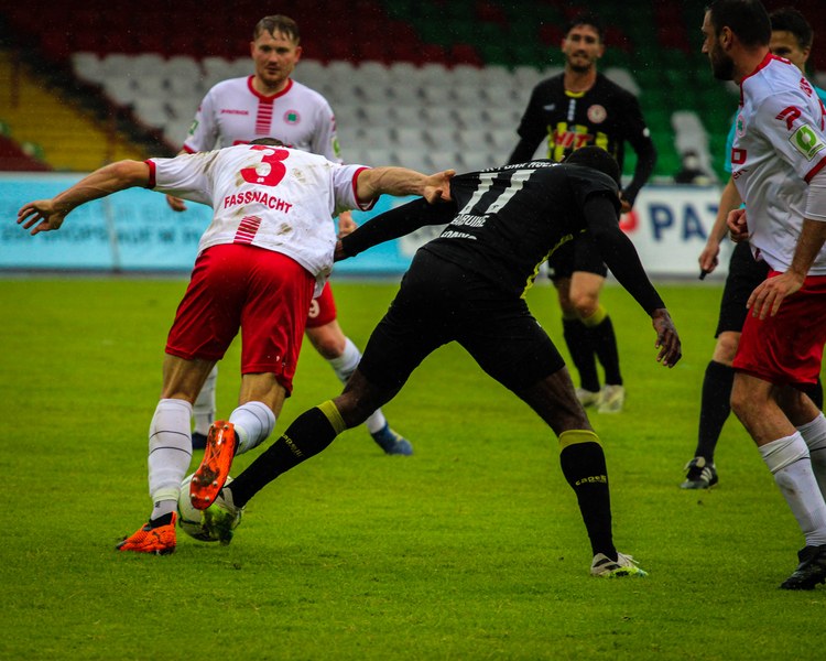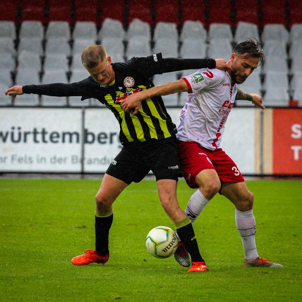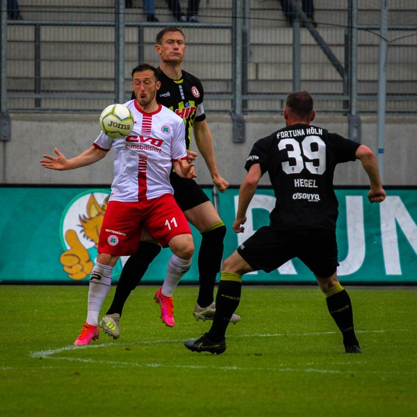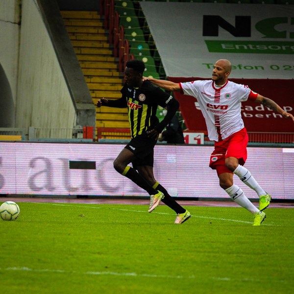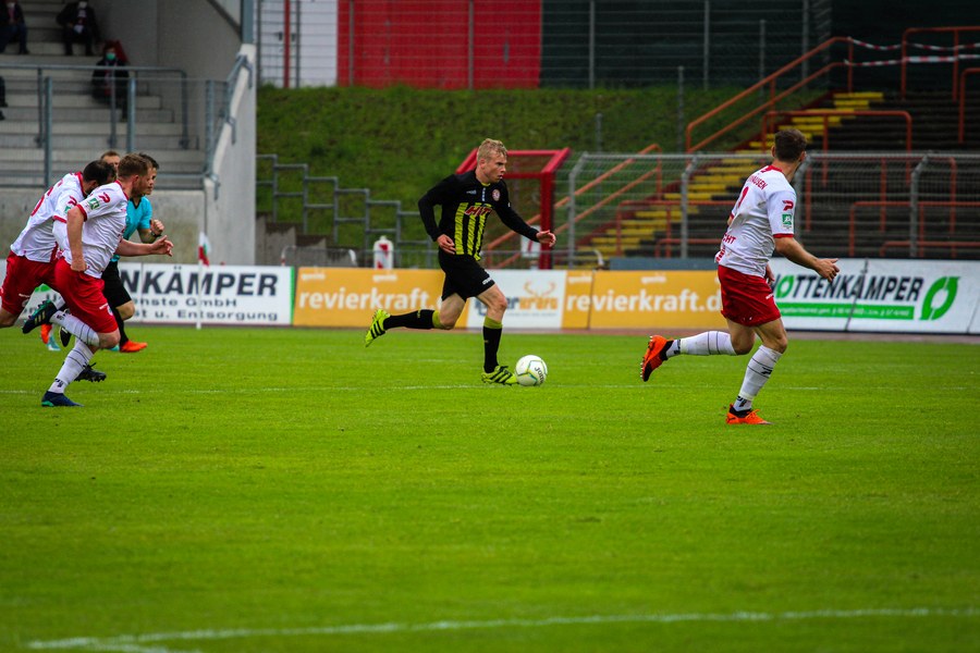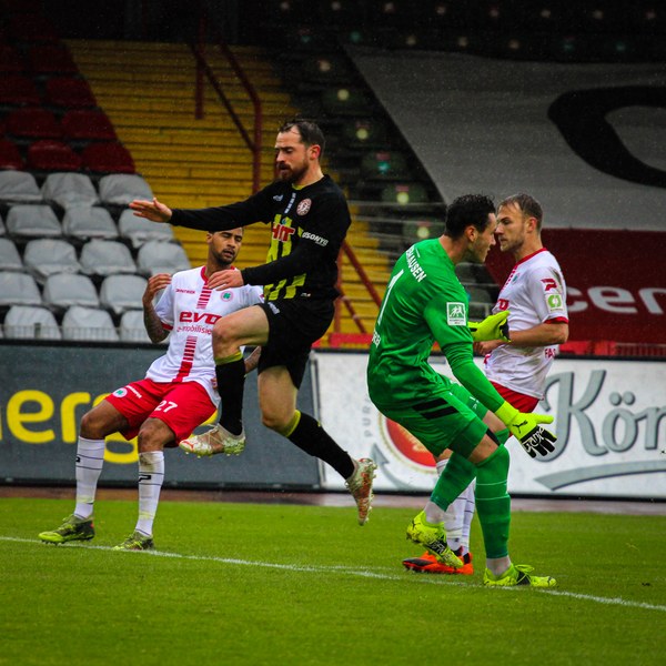 Nachdem die Fortuna am Mittwoch noch im Bitburg-Pokal angetreten ist, stand heute wieder Ligaalltag auf dem Programm. Der Tabellensiebte aus Oberhausen durfte heute nach langer Zeit wieder Zuschauer im Stadion begrüßen. 500 Fans empfingen die Mannschaften lautstark auf dem Spielfeld. Im Vergleich zum Pokalspiel vor wenigen Tagen nahm Alexander Ende nur einen einzigen Wechsel vor: Für Hamza Salman stand Pascal Itter in der Startelf. In Oberhausen regnete es auch vor Anpfiff schon ununterbrochen, weshalb einige Spieler auf dem nassen Rasen den Halt verloren und wegrutschten. Jan-Luca Rumpf holte sich in einem intensiven Spiel schon früh die gelbe Karte ab, nachdem er seinen Gegner umgrätschte (7. Min.). Die vielen Ballverluste und die damit verbundenen Ballbesitzwechsel führten dazu, dass der Beginn der Partie sehr hektisch wirkte. Ein leichtsinniger Ballverlust in der Vorwärtsbewegung von Timo Hölscher leitete beinahe die Führung der Gastgeber ein. Ein Steckpass landete bei Oubeyapwa, in seinen Abschluss warf sich Lanius rein und klärte gerade noch zur Ecke. Der anschließende Eckball ließ die Zuschauer dann jubeln. Das Spielgerät wurde an den zweiten Pfosten befördert, dort stand Terada bereit, der per Kopf den 1:0 Führungstreffer erzielte (12. Min.). Die Fortuna lag früh zurück, fand aber auch nach dem Rückschlag nicht wirklich in die Partie. Das Spiel der Fortuna war teilweise sehr überhastet und sie schafften es kaum den Ball über mehrere Stationen laufen zu lassen. Rot-Weiß Oberhausen kam dagegen öfter in die Nähe des gegnerischen Tores und holte zumindest immer mal wieder einen Eckball raus. Die erste gefährliche Aktion auf Seiten der Fortuna leitete Hölscher ein. Der zentrale Mittelfeldspieler spielte einen punktgenauen Ball in den Lauf von Suheyel Najar. Er rannte auf das gegnerische Tor und suchte den Abschluss. Fassnacht, der im Vollsprint angerauscht kam, schmiss sich dazwischen und konnte den Gegentreffer verhindern (25. Min.). Das sollte auch die einzige nennenswerte Chance in Durchgang eins für die Fortuna bleiben. Der Torschütze Terada hätte beinahe einen Doppelpack geschnürt. Ausgang war eine schöne Kombination der Kleeblätter, bevor Terada das Leder knapp rechts am Kasten von Rauhut vorbeisetzte (32. Min.). Fortuna Cheftrainer Alexander Ende wechselte bereits vor dem Pausenpfiff und brachte den von seiner Verletzung zurückgekehrten Maik Kegel. Für ihn räumte Kai Försterling das Feld, der bereits mit einer gelben Karte belastet war (39. Min.). Bevor es für beide Mannschaften in die Kabinen ging, hatten die Oberhausener erneut eine gute Möglichkeit. Kreyer ließ die komplette Abwehr der Fortuna alles andere als gut aussehen und tanzte die Hintermannschaft im Strafraum aus. Sein abgeblockter Schuss landete beim Oberhausener Topscorer Oubeyapwa. Aus guter Position konnte sein Abschluss ebenfalls gerade noch abgewehrt werden (42. Min.). Kurz darauf pfiff Schiedsrichter Schäfer zur Halbzeit.