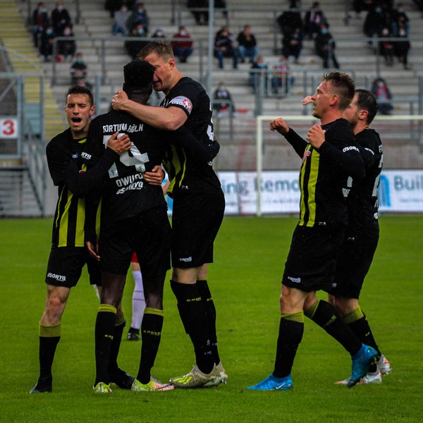 Die Fortuna vollzog in der Halbzeitpause einen Wechsel: Für Innenverteidiger Dominik Lanius kam Dan-Patrick Poggenberg in die Partie. Poggenberg spielte auf der linken Verteidigerposition, dafür rückte Rumpf in die Innenverteidigung neben Jannik Löhnen. Die erste Chance nach Wiederanpfiff gehörte der Fortuna. Ubabuike, auf den Najar ablegte, versuchte sich aus der Distanz, Heekeren konnte den Schuss aber problemlos festhalten (47. Min.). Die Fortuna nahm jetzt mehr am Spielgeschehen teil und kam immer wieder in die Nähe des gegnerischen Strafraumes. Nach einer Ecke zog der im Rückraum stehende Hölscher ab, aber auch in seinen Schuss warf sich ein Gegenspieler rein (57. Min.). Nur wenige Minuten später war Hölscher dieses Mal der Vorlagengeber. Zuvor behauptete sich der Mittelfeldmann gegen mehrere Gegenspieler und hatte dann das Auge für Najar. Vom linken Strafraumeck zog Najar ab, sein Schuss landete aber in den Armen des Oberhausener Torwarts (60. Min.). Das war die letzte Aktion von Hölscher, da er im Anschluss ausgewechselt und von Nico Brandenburger ersetzt wurde (61. Min.). Die Fortuna bekam mit der Zeit immer mehr Ballbesitz und kombinierte sich bis ins letzte Drittel des Spielfeldes, aber bislang konnte keiner Heekeren überwinden. In der 65. Minute versuchte Najar artistisch eine von Kegel geschlagene Flanke direkt per Seitfallzieher zu nehmen. Dabei traf er den Ball mit seinem Schienbein und legte unfreiwillig auf Rumpf ab. Der Abwehrspieler knallte den Ball aufs Tor, Heekeren bekam seine Arme aber noch rechtzeitig hochgerissen (65. Min.). Die Fortuna hatte in Durchgang zwei deutlich mehr Chancen als noch in der ersten Halbzeit und hätte sich mittlerweile den Ausgleich verdient. Für die Schlussviertelstunde brachte Ende Jean Marie Nadjombe für Francis Ubabuike (74. Min.). Dass die Fortuna immer mehr Druck machte, zahlte sich aus: In der 79. Minute traf Mike Owusu zum Ausgleich. Zuvor hatte Najar einen Freistoß von der rechten Außenbahn getreten. Löhden, der im Sommer von Oberhausen zur Fortuna wechselte, legte auf Owusu ab und der haute den Ball in das Netz zum 1:1 Ausgleich. Danach passierte nicht mehr viel, da beide Mannschaften keine hochkarätigen Chancen mehr zu Stande brachten. Am Ende teilten sich beide Mannschaften in einem regnerischen Spiel die Punkte. Für die Fortuna steht nächste Woche das letzte Heimspiel in der diesjährigen Saison an. Im Südstadion gastiert am Samstag, den 29.05.21 um 14 Uhr der FC Schalke 04 U23.