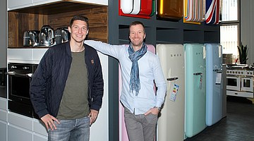 MP: Ich bin ein solider Mann und kann das nötigste machen, angefangen bei einem Nudelgericht. Den Großteil übernimmt aber glücklicherweise meine Frau, sonst wäre ich ein Hungerhaken. Die Kühlschränke von Smeg hier ähneln meinem. Ich mag diesen Retrostyle sehr. Die Küchengeräte hier sind ja der Wahnsinn.