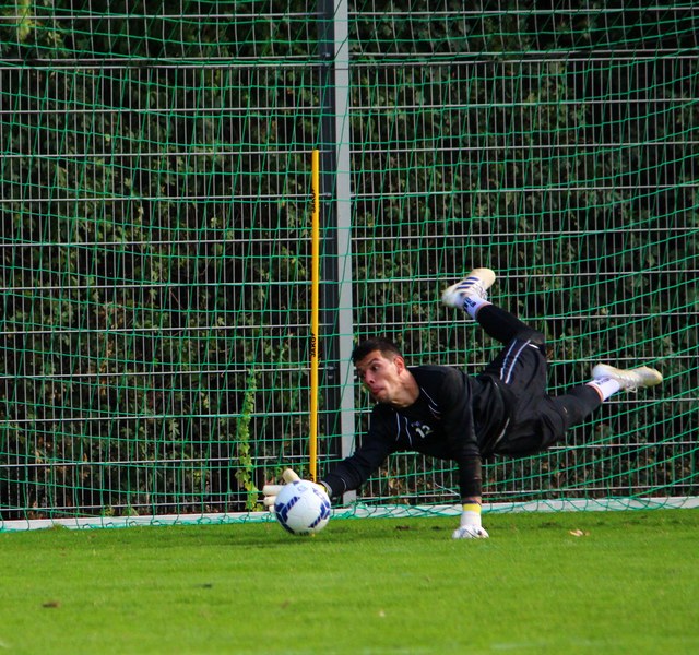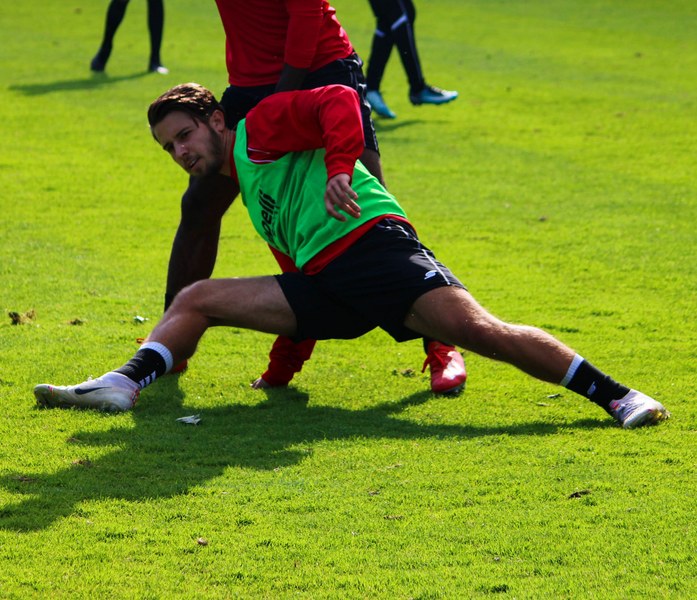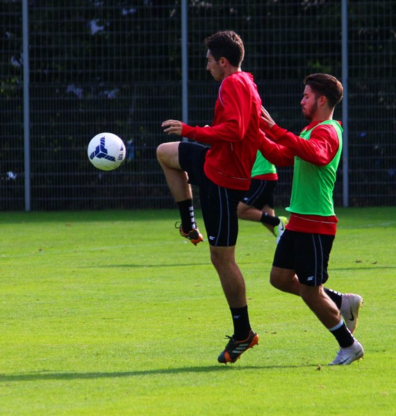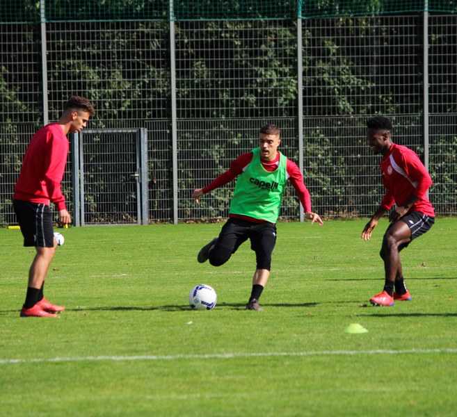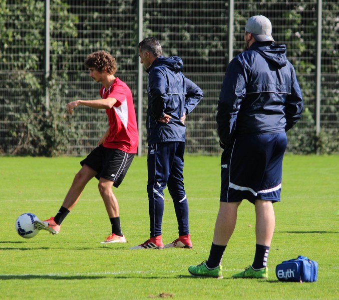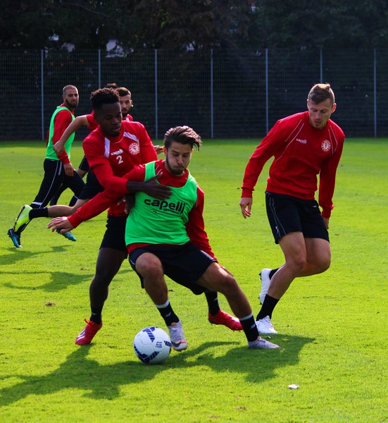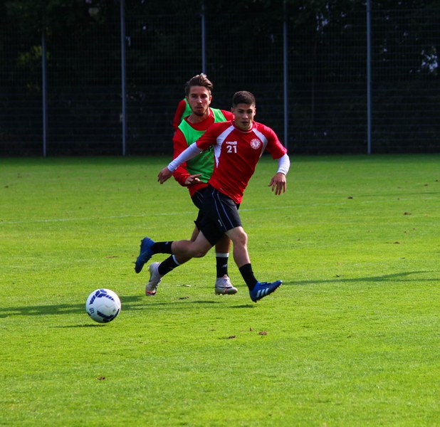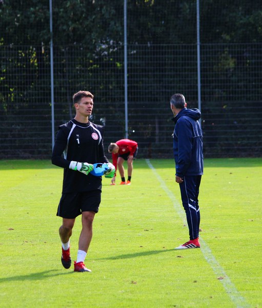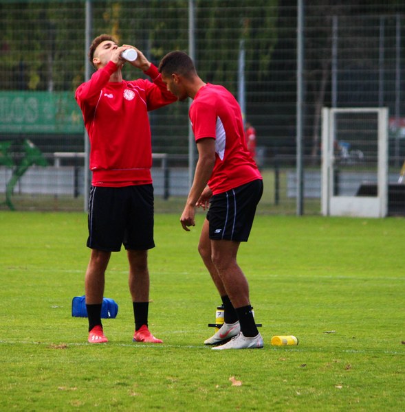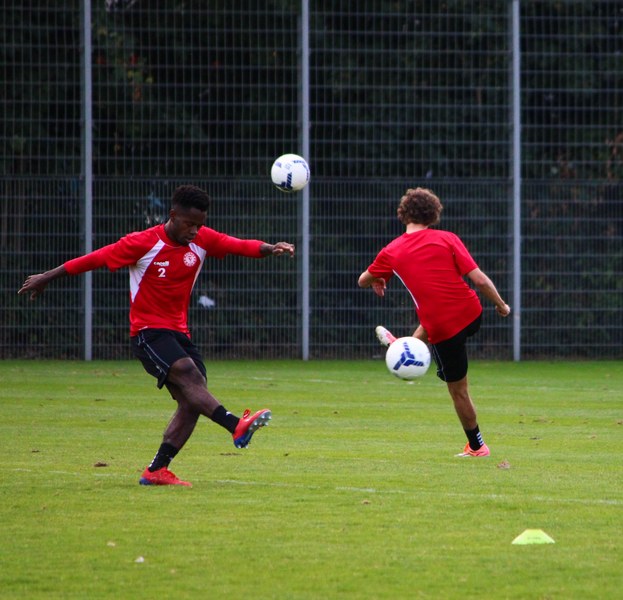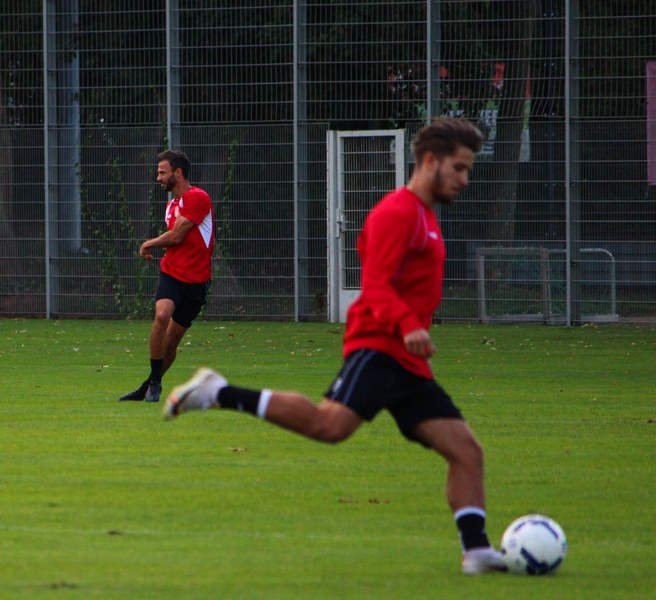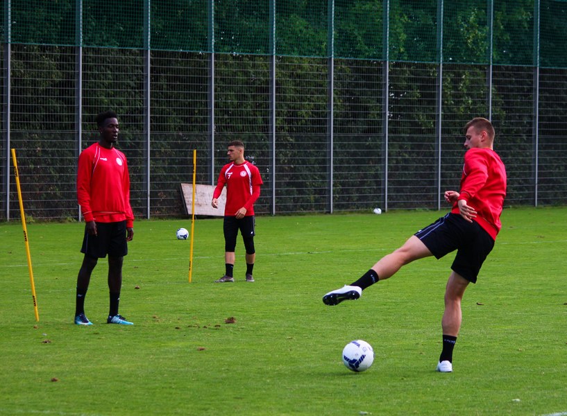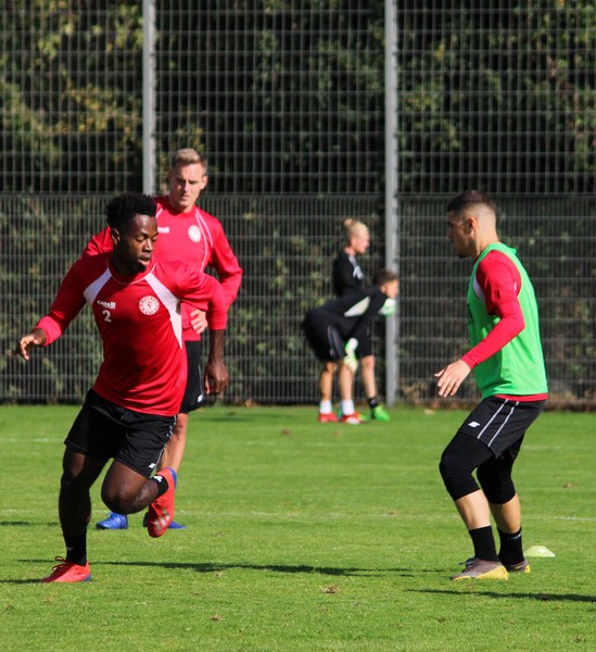 Stratos: „Angeschlagen ist Mike Owusu. Aber Mike ist ein guter Jung. Er weiß, was er machen muss, damit er am Freitag auf dem Platz steht. Felix Neuhäuser und Kenan Dünnwald sind verletzt. Die haben sich beide in der U 23 einen Bänderriss geholt. Lionel Salla hat noch Problem mit der Schulter. Kelvin Lunga hat auch immer noch Probleme. Farid war letzte Woche krank. Da man muss immer ein bisschen aufpassen. Yannick Filipovic hat gestern normal mittrainiert.“