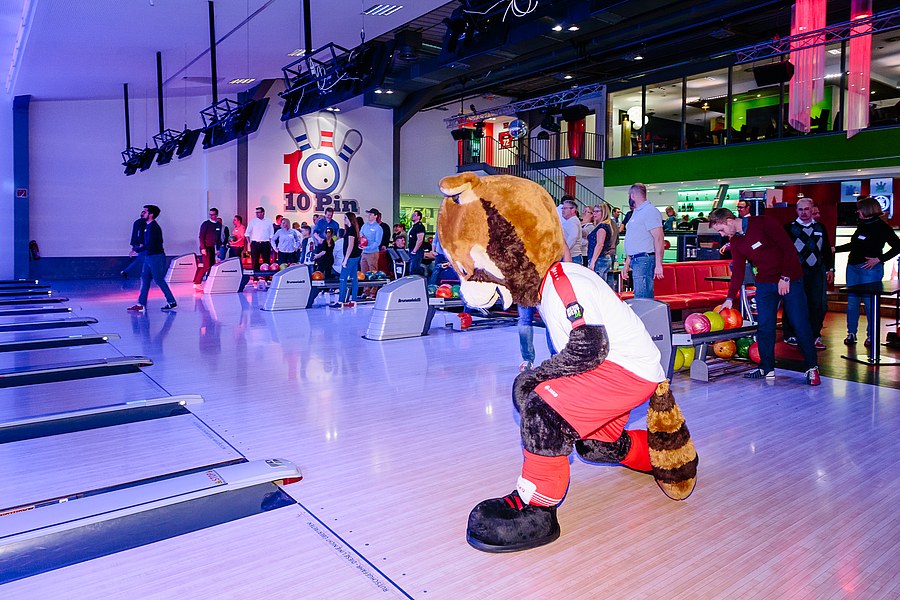 In zwei Runden wurde in mehreren Gruppen gebowlt. Ziel war es dabei, so oft wie möglich alle zehn Pins abzuräumen. Sobald dies gelang, gab es einen Punkt für die jeweilige Gruppe. Zur Stärkung bot 10Pin ein abwechslungsreiches Fingerfood Buffet. Auch Fortuna-Panda Fred schaute sich den Bowlingspaß in Hürth aus nächster Nähe an.