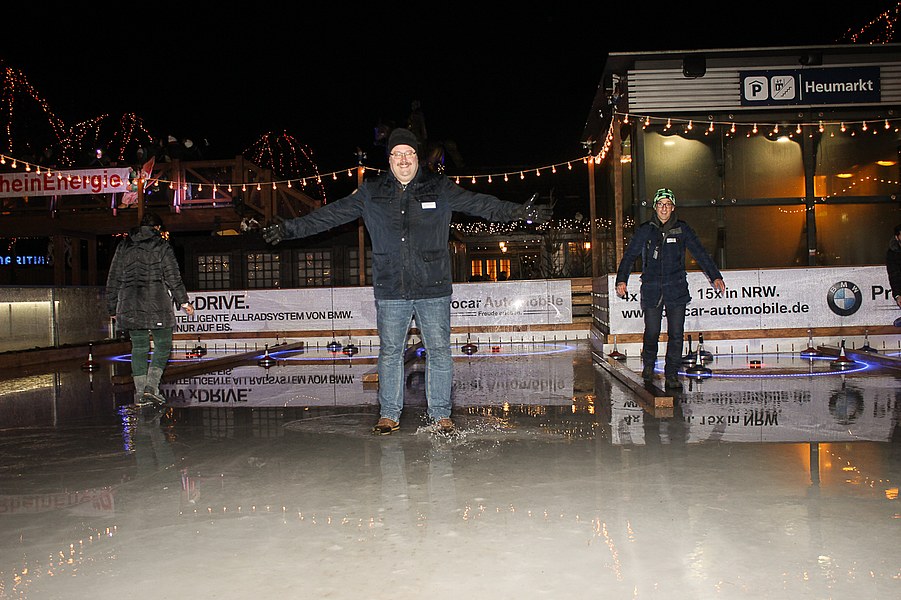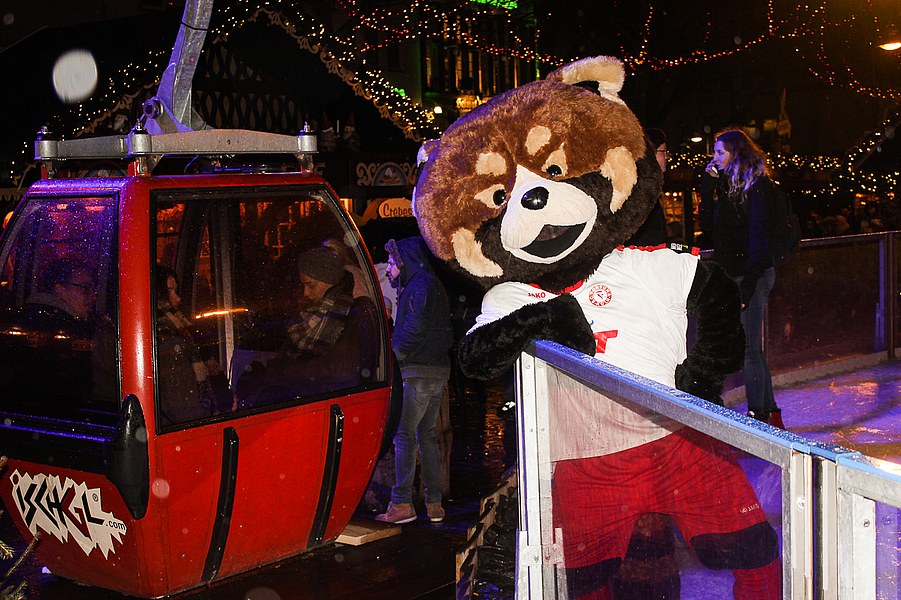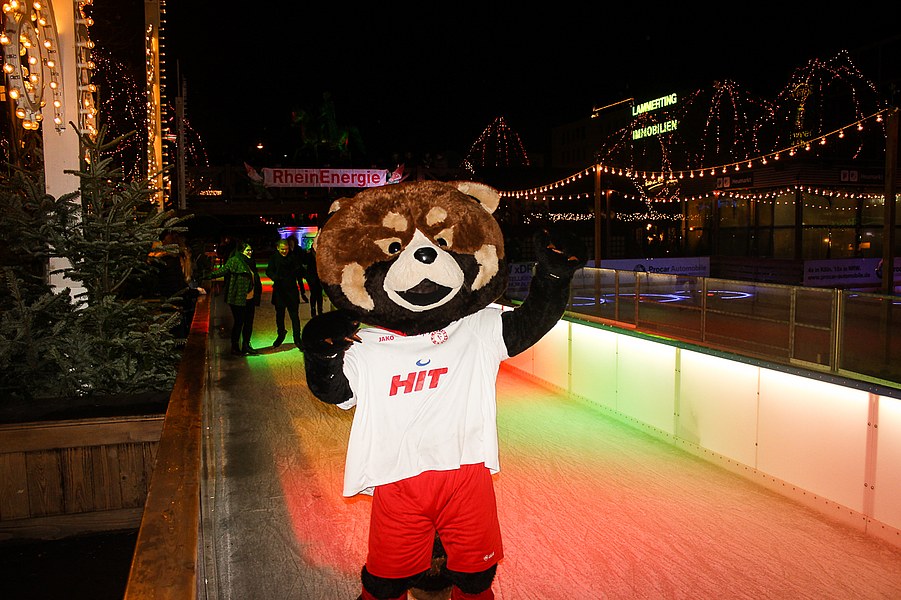 Fortuna-Panda Fred war ebenfalls dabei und machte die Eisbahn am Heumarkt unsicher.
