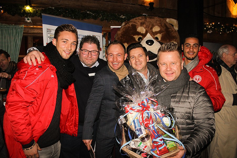 Nach einer Begrüßung von Benjamin Bruns, Mitglied der Geschäftsleitung Fortuna Köln und Sascha Müller, Leiter Vertriebssteuerung & Marketing Gruppe Procar Automobile, gab es zunächst eine herzhafte Brotzeit zur Stärkung. Anschließend ging es an die Eisstockbahn. In zwei Gruppen mit gemischten Teams wurden dann die Eisstöcke fleißig in Richtung Daube befördert. Am erfolgreichsten war dabei das Team von den Fortuna-Profis Tim Boss und Hamdi Dahmani sowie Christian Schardt von der Weinmanufaktur Christian Schardt und Peter Schmitz von der Bäckerei Schmitz & Nittenwilm.