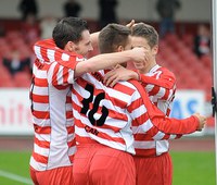 (Gleich 34mal hatten die Spieler der Fortuna, in der Hinrunde der NRW-Liga-Saison 2009/2010, Gelegenheit zu jubeln. Foto: B.Lehmann)