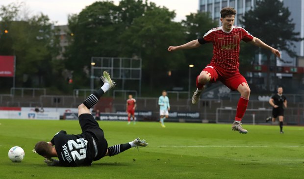 Mann des Abends auf Seiten der Kölner war aber Torwart Lennart Winkler. Der 20-Jährige war bislang 17-mal in der U23 in der Mittelrheinliga zum Einsatz gekommen. Nun gab er sein Debüt für die Südstädter in der Regionalliga. Und mit einer Glanztat nach einem Schuss von Lion Schweers in die lange Ecke vermied er den Rückstand für sein Team (75.). „Es war richtig geil für mich heute vor dieser Kulisse unter Flutlicht zu spielen. Nach dem 1:1 war das Spiel offen. Henri hat dann ein Supertor gemacht. Ich habe den Ball von Schweers nicht gesehen, das ging sehr schnell. Cool, dass ich ihn halten konnte, und dass der Nachschuss von Beckhoff vorbei ging“, sagte Winkler bescheiden.
