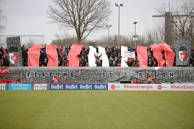 Im Südstadion hat grundsätzlich die Stadionordnung Gültigkeit. Spruchbänder oder Banner dürfen keine politischen, beleidigenden oder verunglimpfenden Inhalte haben. Aufgrund von Brandschutzvorschriften sind Transparente im Vorfeld anzumelden, Choreografien bedürfen einer ausführlichen vorherigen Absprache. Die vollständige Anmeldung inklusive Material-Zertifikaten muss spätestens sieben Tage vor dem Spieltag bei der Fortuna Köln Spielbetriebsgesellschaft mbH vorliegen. Bestimmungen des Brandschutzes (alle Materialen mindestens B1-zertifiziert) sind dabei einzuhalten und werden am Spieltag durch Vertreter der Feuerwehr überprüft.